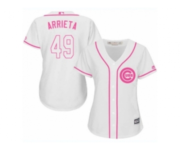 Women's Majestic Chicago Cubs #49 Jake Arrieta Authentic White Fashion MLB Jersey