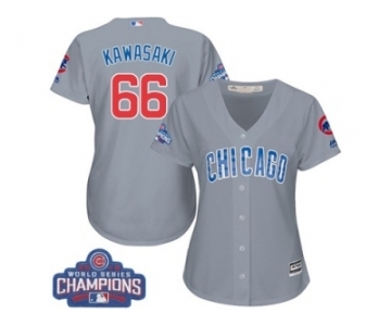 Women's Majestic Chicago Cubs #66 Munenori Kawasaki Authentic Grey Road 2016 World Series Champions Cool Base MLB Jersey