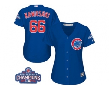 Women's Majestic Chicago Cubs #66 Munenori Kawasaki Authentic Royal Blue Alternate 2016 World Series Champions Cool Base MLB Jersey