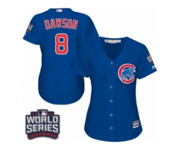Women's Majestic Chicago Cubs #8 Andre Dawson Authentic Royal Blue Alternate 2016 World Series Bound Cool Base MLB Jersey