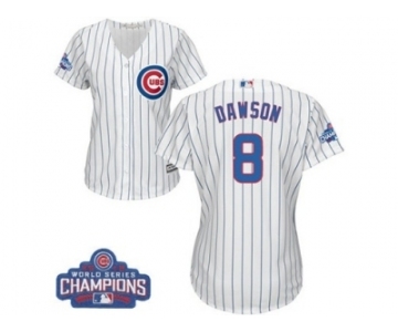 Women's Majestic Chicago Cubs #8 Andre Dawson Authentic White Home 2016 World Series Champions Cool Base MLB Jersey
