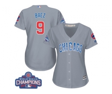 Women's Majestic Chicago Cubs #9 Javier Baez Authentic Grey Road 2016 World Series Champions Cool Base MLB Jersey