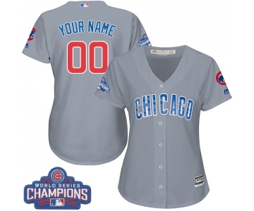Women's Majestic Chicago Cubs Customized Authentic Grey Road 2016 World Series Champions Cool Base MLB Jersey