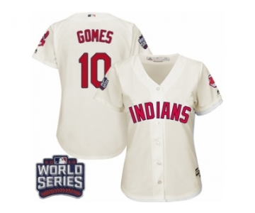 Women's Majestic Cleveland Indians #10 Yan Gomes Authentic Cream Alternate 2 2016 World Series Bound Cool Base MLB Jersey