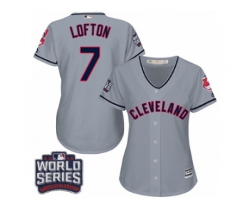 Women's Majestic Cleveland Indians #7 Kenny Lofton Authentic Grey Road 2016 World Series Bound Cool Base MLB Jersey