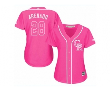 Women's Majestic Colorado Rockies #28 Nolan Arenado Replica Pink Fashion Cool Base MLB Jersey