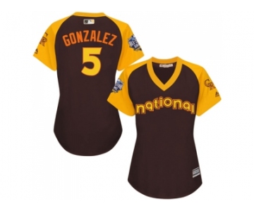 Women's Majestic Colorado Rockies #5 Carlos Gonzalez Authentic Brown 2016 All-Star National League BP Cool Base MLB Jersey
