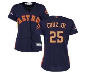Women Majestic Houston Astros #25 Jose Cruz Jr. Replica Navy Blue Alternate 2017 World Series Bound Cool Base MLB Jersey