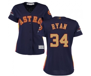 Women's Majestic Houston Astros #34 Nolan Ryan Authentic Navy Blue Alternate 2018 Gold Program Cool Base MLB Jersey