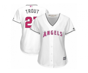 Women's Majestic Los Angeles Angels of Anaheim #27 Mike Trout Authentic White Mother's Day Cool Base MLB Jersey