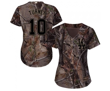 Women Los Angeles Dodgers #10 Justin Turner Camo Realtree Collection Cool Base Stitched MLB Jersey