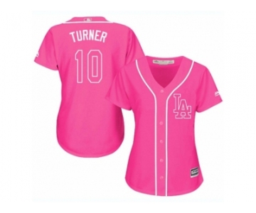 Women's Majestic Los Angeles Dodgers #10 Justin Turner Replica Pink Fashion Cool Base MLB Jersey