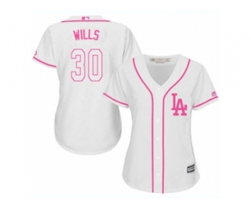 Women's Majestic Los Angeles Dodgers #30 Maury Wills Authentic White Fashion Cool Base MLB Jersey