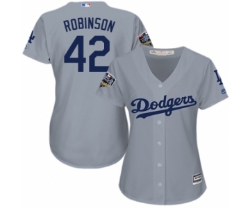 Women's Majestic Los Angeles Dodgers #42 Jackie Robinson Authentic Grey 2018 World Series MLB Jersey