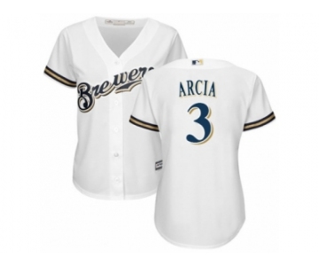 Women's Majestic Milwaukee Brewers #3 Orlando Arcia Replica White Home Cool Base MLB Jersey