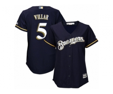 Women's Majestic Milwaukee Brewers #5 Jonathan Villar Replica Navy Blue Alternate Cool Base MLB Jersey