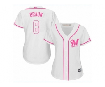 Women's Majestic Milwaukee Brewers #8 Ryan Braun Authentic White Fashion Cool Base MLB Jersey