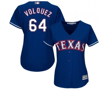 Women's Majestic Texas Rangers #64 Edinson Volquez Authentic Royal Blue Alternate 2 Cool Base MLB Jersey