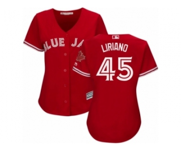 Women's Majestic Toronto Blue Jays #45 Francisco Liriano Replica Red Canada Day MLB Jersey
