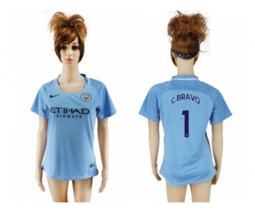 Women's Manchester City #1 C.Bravo Home Soccer Club Jersey