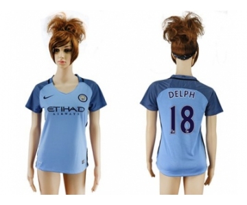 Women's Manchester City #18 Delph Home Soccer Club Jersey