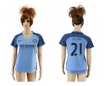 Women's Manchester City #21 Silva Home Soccer Club Jersey1
