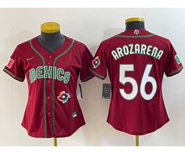 Women's Mexico Baseball #56 Randy Arozarena 2023 Red World Classic Stitched Jersey