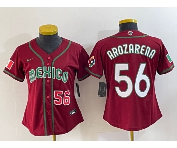 Women's Mexico Baseball #56 Randy Arozarena Number 2023 Red World Classic Stitched Jersey 1