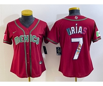 Women's Mexico Baseball #7 Julio Urias Number 2023 Red World Baseball Classic Stitched Jersey1