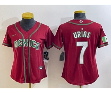 Women's Mexico Baseball #7 Julio Urias Number 2023 Red World Baseball Classic Stitched Jerseys