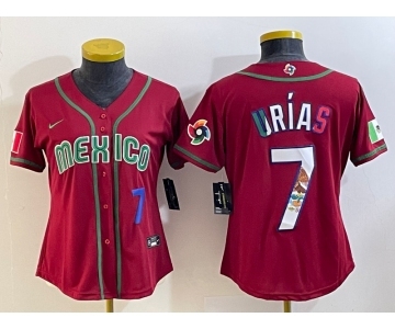 Women's Mexico Baseball #7 Julio Urias Number 2023 Red World Baseball Classic Stitched Jersey
