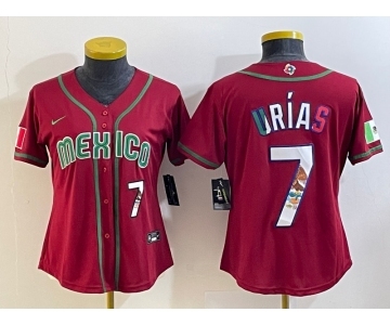 Women's Mexico Baseball #7 Julio Urias Number 2023 Red World Baseball Classic Stitched Jerseys