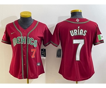 Women's Mexico Baseball #7 Julio Urias Number 2023 Red World Baseball Classic Stitched Jerseys