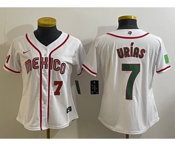 Women's Mexico Baseball #7 Julio Urias Number 2023 White World Classic Stitched Jersey7
