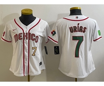 Women's Mexico Baseball #7 Julio Urias Number 2023 White World Classic Stitched Jersey
