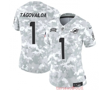 Women's Miami Dolphins #1 Tua Tagovailoa 2024 F.U.S.E Arctic Camo Salute To Service Limited Stitched Football Jersey