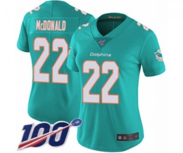 Women's Miami Dolphins #22 T.J. McDonald Aqua Green Team Color Vapor Untouchable Limited Player 100th Season Football Jersey