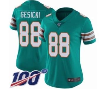 Women's Miami Dolphins #88 Mike Gesicki Aqua Green Alternate Vapor Untouchable Limited Player 100th Season Football Jersey