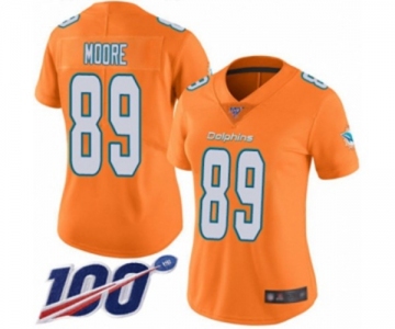 Women's Miami Dolphins #89 Nat Moore Limited Orange Rush Vapor Untouchable 100th Season Football Jersey