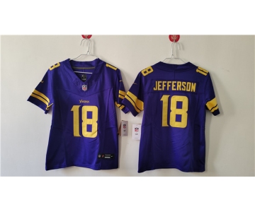 Women's Minnesota Vikings #18 Justin Jefferson Purple Color Rush F.U.S.E. Limited Football Stitched Jersey