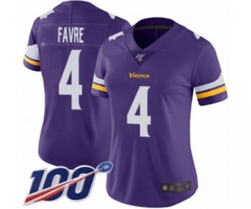 Women's Minnesota Vikings #4 Brett Favre Purple Team Color Vapor Untouchable Limited Player 100th Season Football Jersey