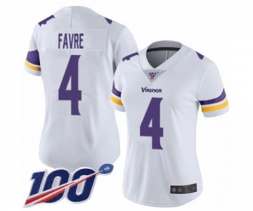 Women's Minnesota Vikings #4 Brett Favre White Vapor Untouchable Limited Player 100th Season Football Jersey