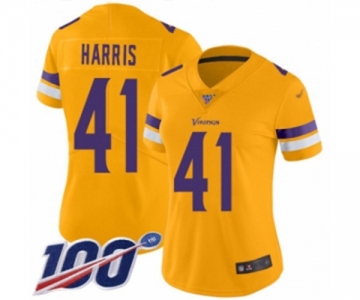 Women's Minnesota Vikings #41 Anthony Harris Limited Gold Inverted Legend 100th Season Football Jersey