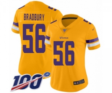 Women's Minnesota Vikings #56 Garrett Bradbury Limited Gold Inverted Legend 100th Season Football Jersey