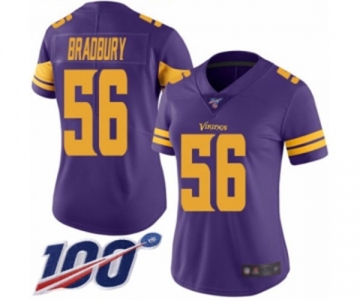 Women's Minnesota Vikings #56 Garrett Bradbury Limited Purple Rush Vapor Untouchable 100th Season Football Jersey