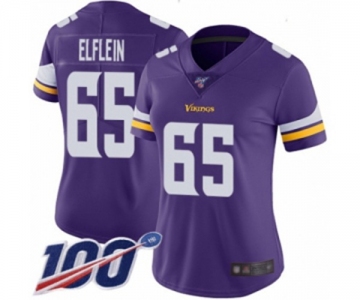 Women's Minnesota Vikings #65 Pat Elflein Purple Team Color Vapor Untouchable Limited Player 100th Season Football Jersey