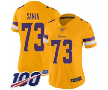 Women's Minnesota Vikings #73 Dru Samia Limited Gold Inverted Legend 100th Season Football Jersey