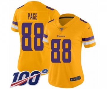 Women's Minnesota Vikings #88 Alan Page Limited Gold Inverted Legend 100th Season Football Jersey