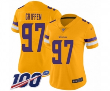 Women's Minnesota Vikings #97 Everson Griffen Limited Gold Inverted Legend 100th Season Football Jersey