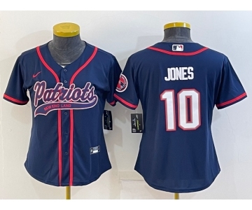 Women's New England Patriots #10 Mac Jones Navy With Patch Cool Base Stitched Baseball Jersey